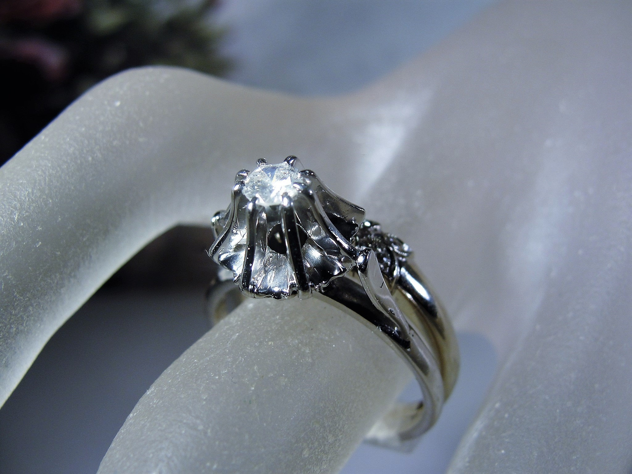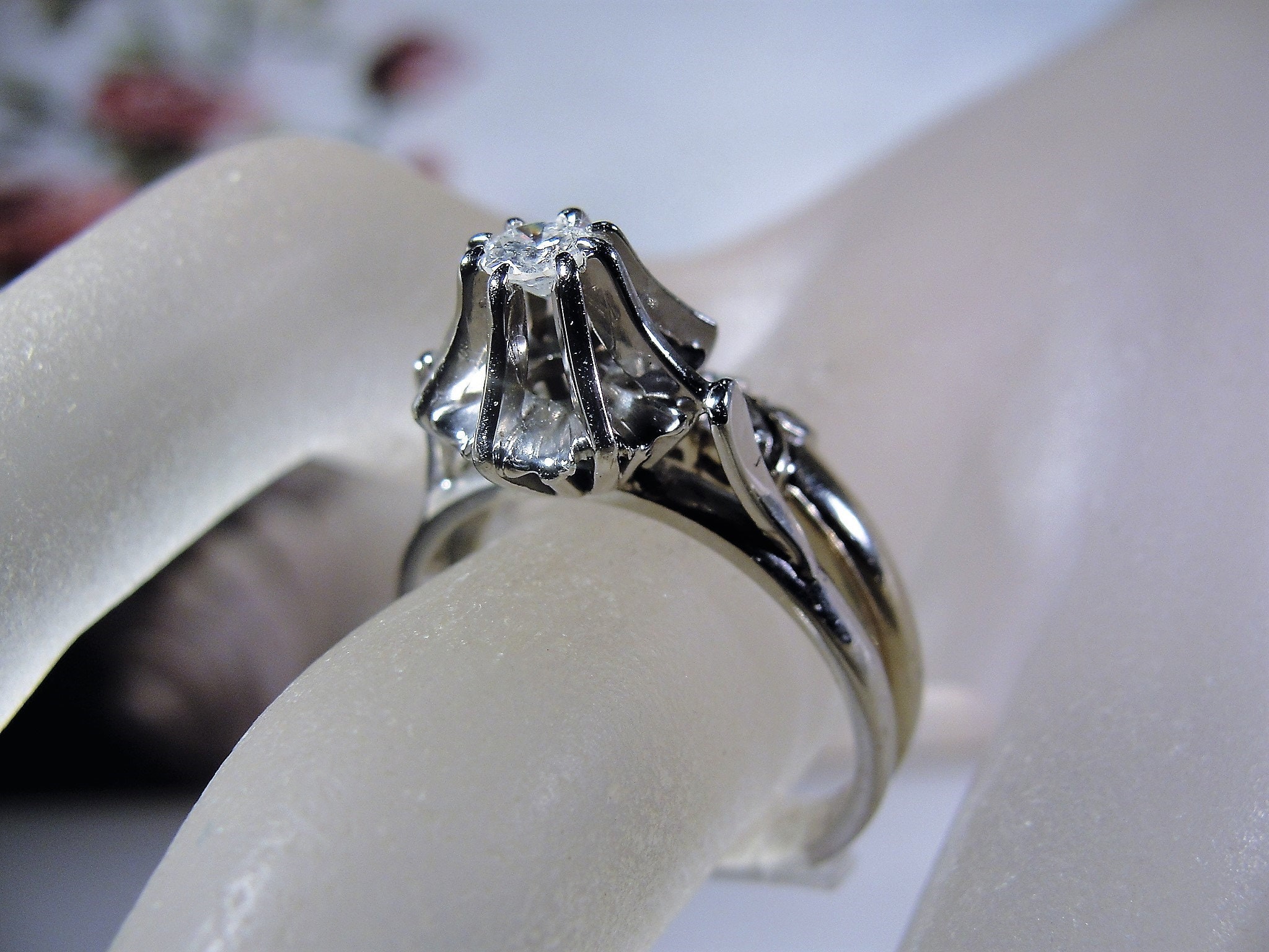 • Diamond Information: There is 1 genuine diamond in this ring; measurement in diameter is .34mm, which is approximately .13 of a carat, cut is “SI1” and color is at least an “H”