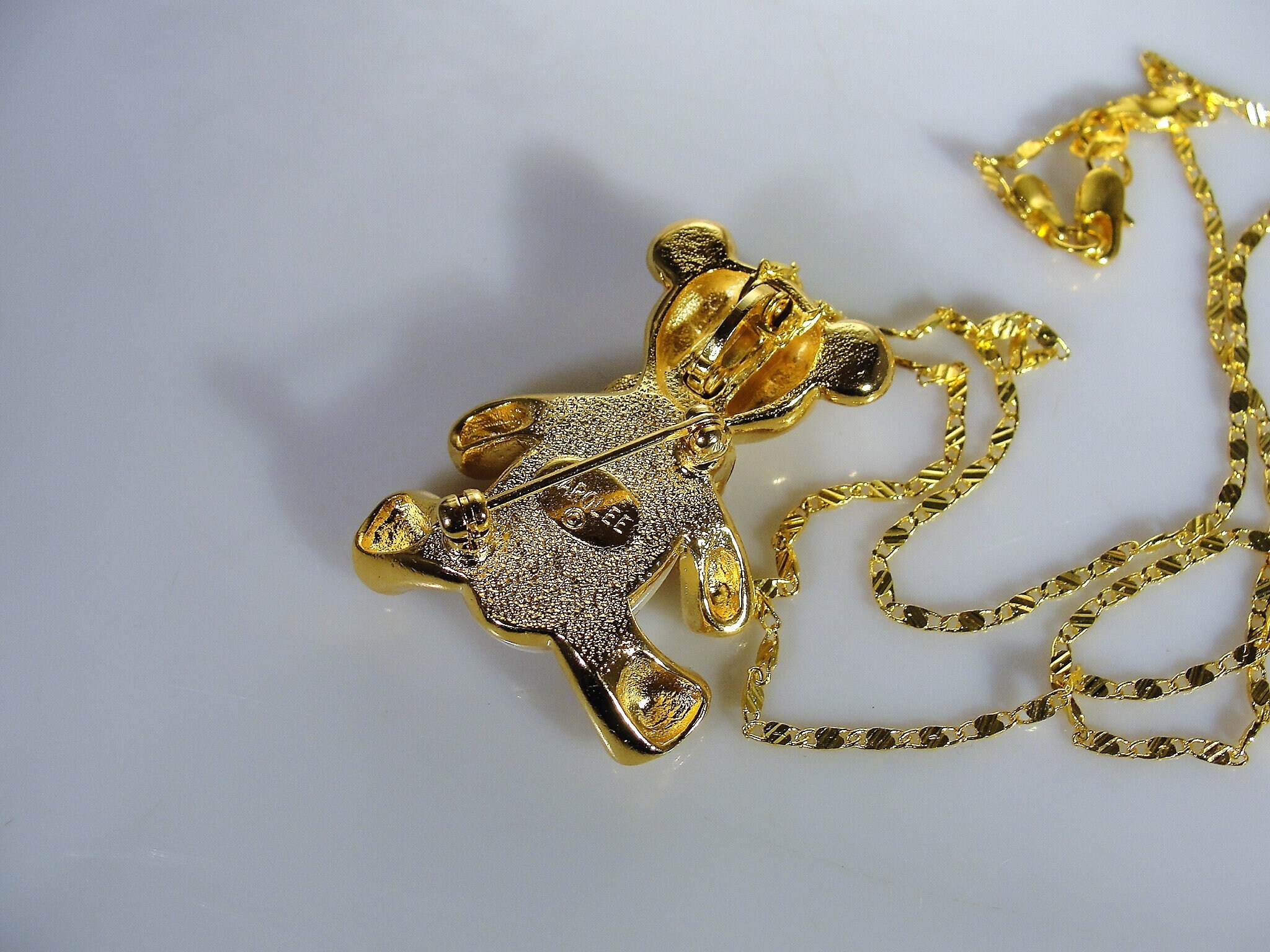 • Hallmarks of “CAROLEE” found on the back of the brooch; “18K GP” is found on the chain