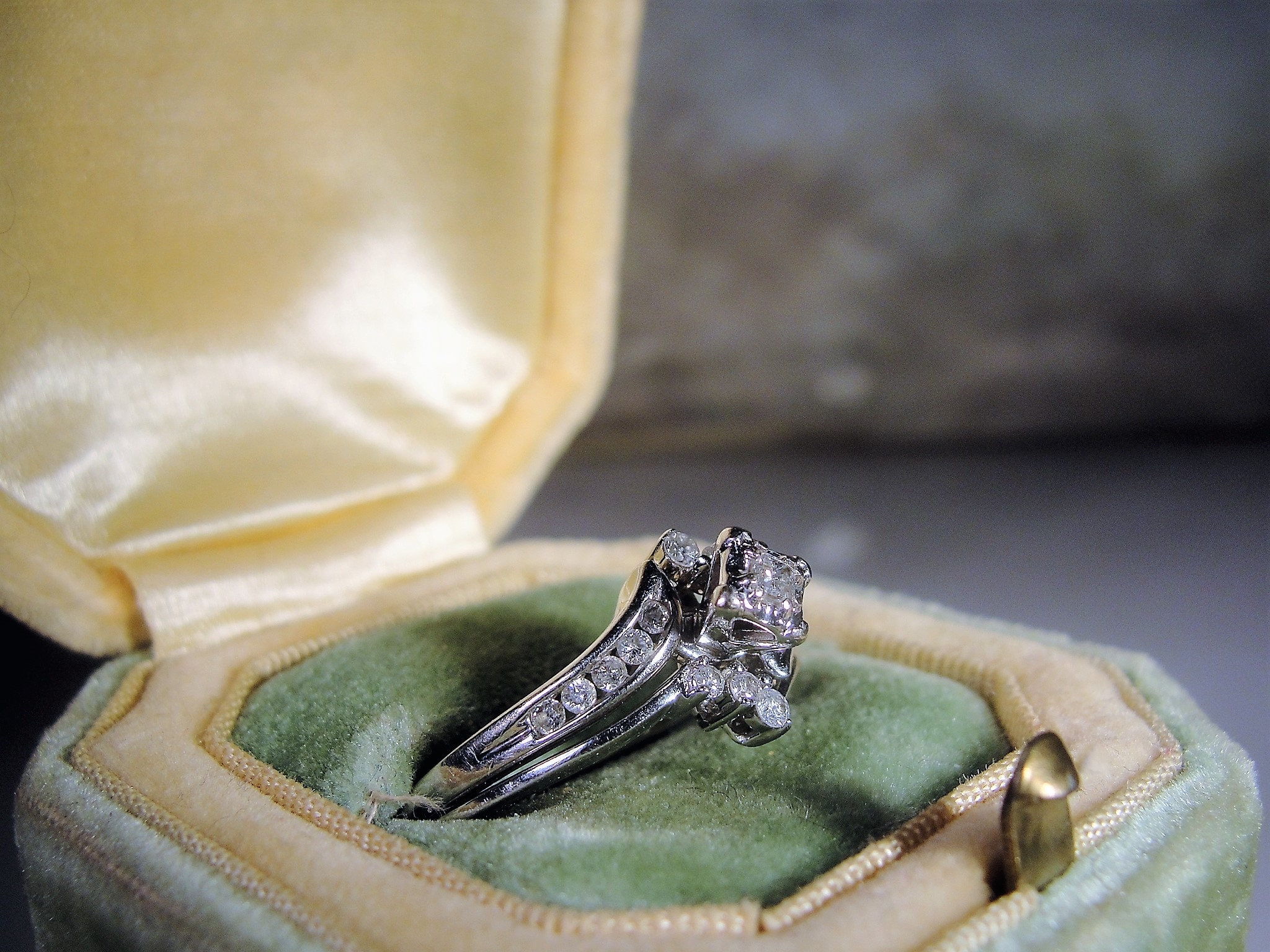 • Measurements of the engagement ring: The bottom of the shank measures approximately 1.6mm width, and the shank gradually increases to 2.7mm under the shoulder area.