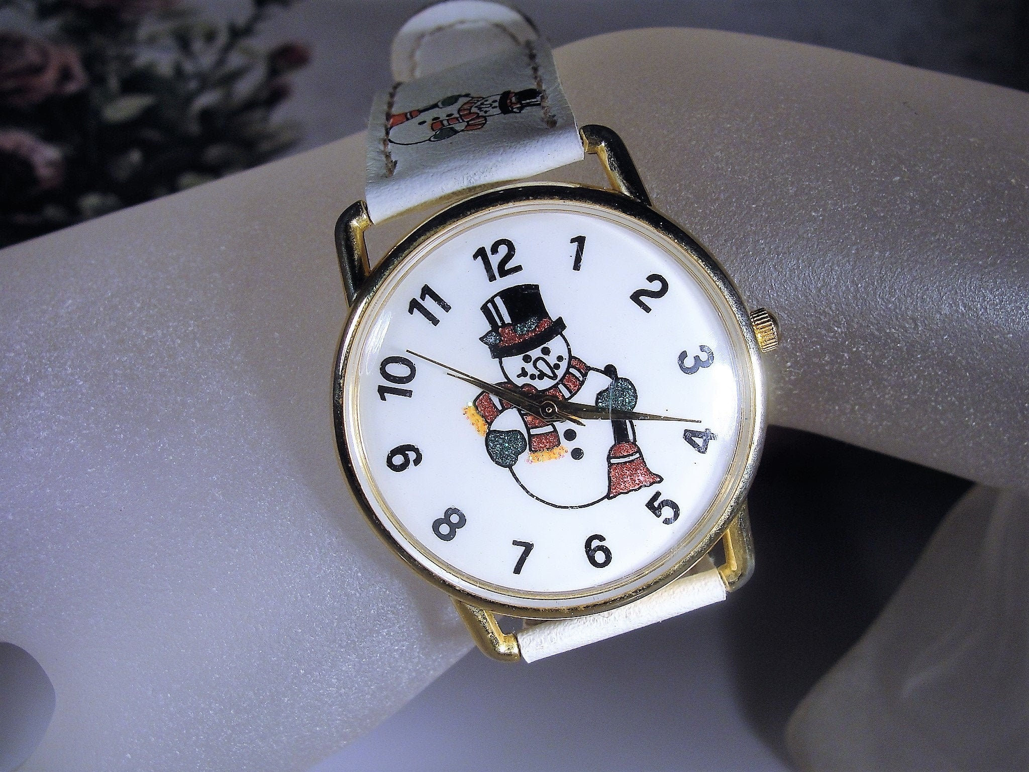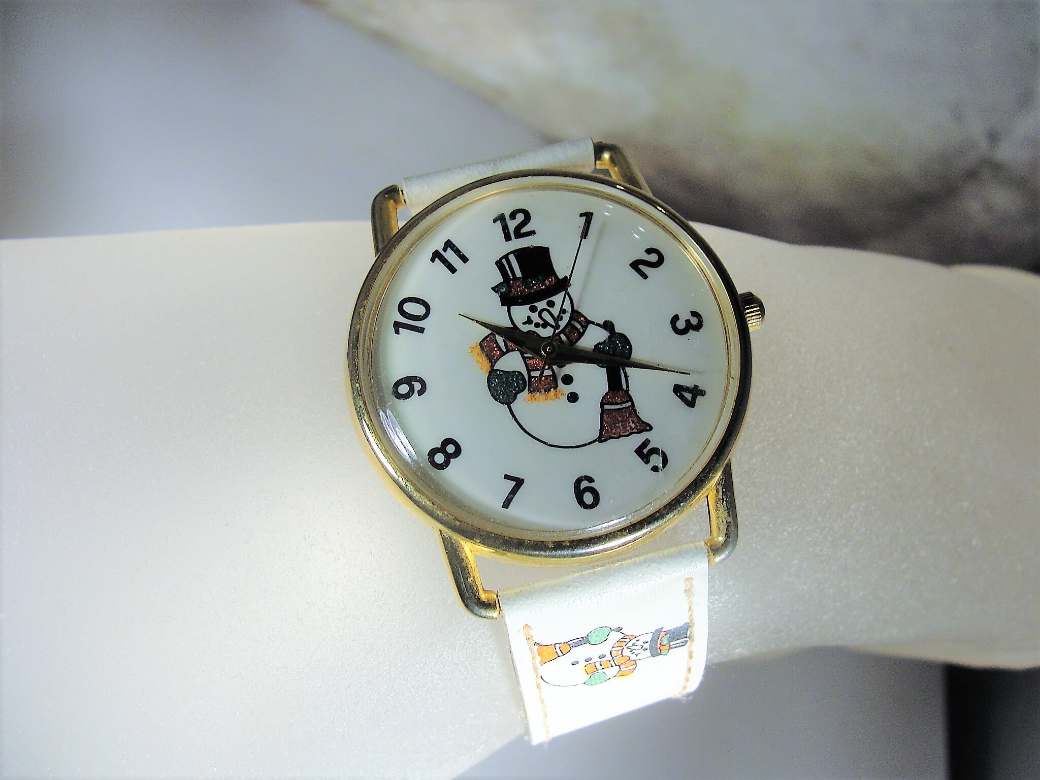 This is a beautiful Christmas and Winter Watch with a Sweet Snowman Picture on the face of the watch. This watch is great for a man, women, teenager or child. The face is large so that the Snowman Picture is very clearly seen. The snowman has glitter accents on its clothing accessories. It has a second hand and easy to read numbers at all hourly locations. This watch is battery operated and it does have a new battery installed in it.