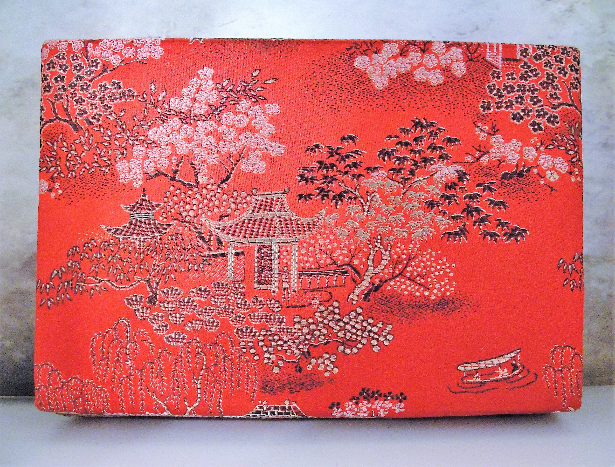 • Silk Brocade Case measures 7.5 inches from west to east and 5.25 inches from north to south and depth is 1.25 inches