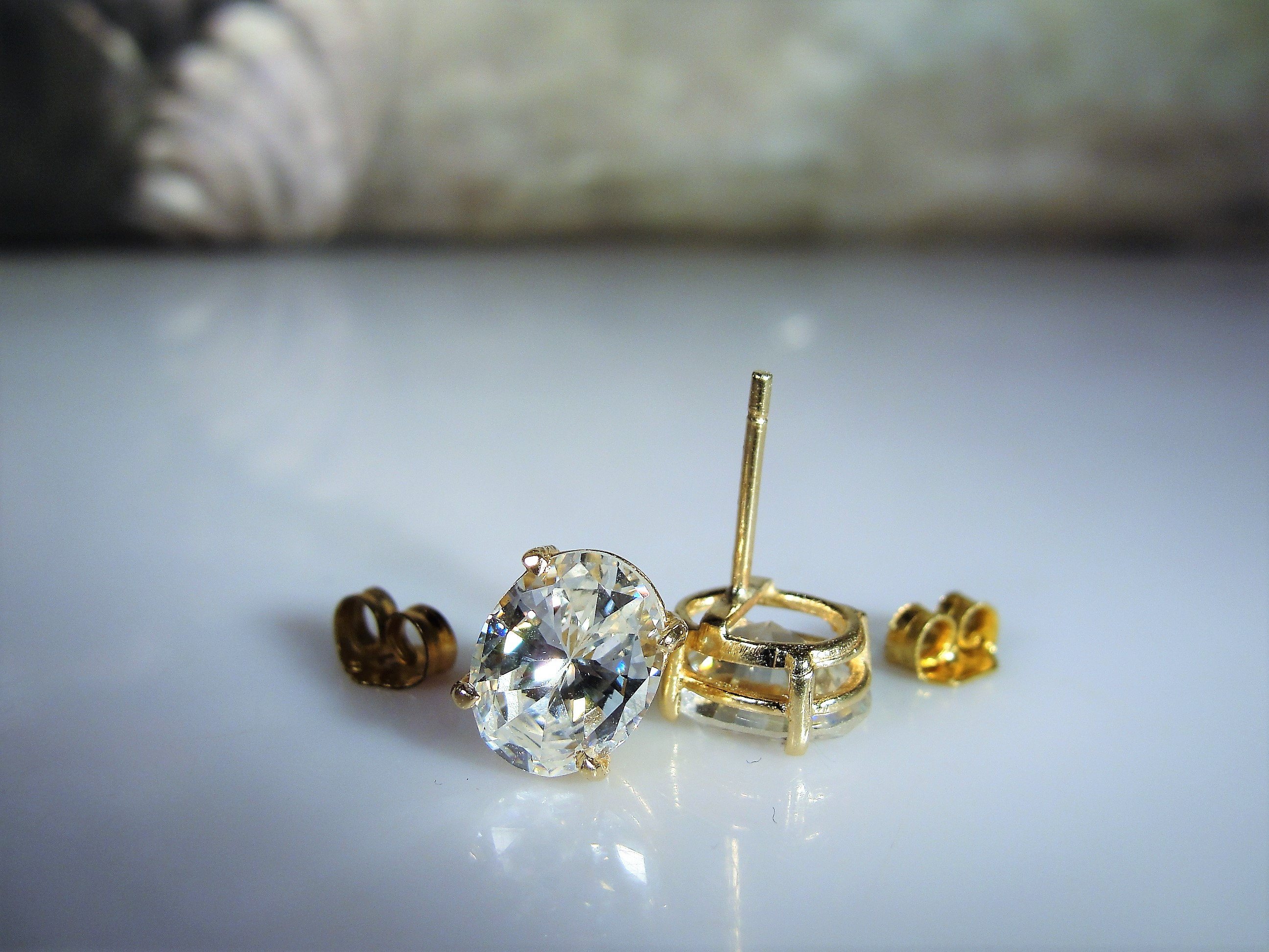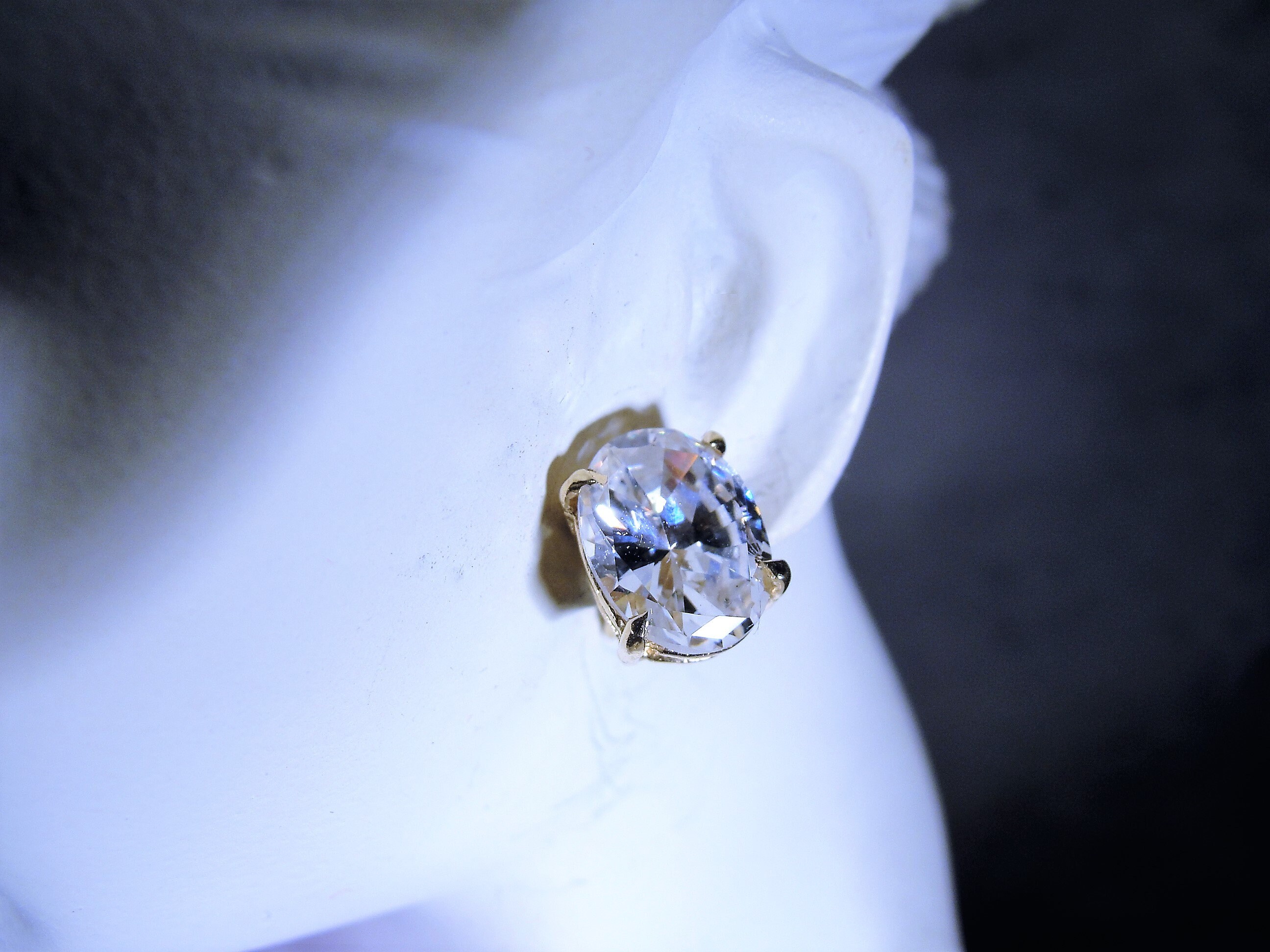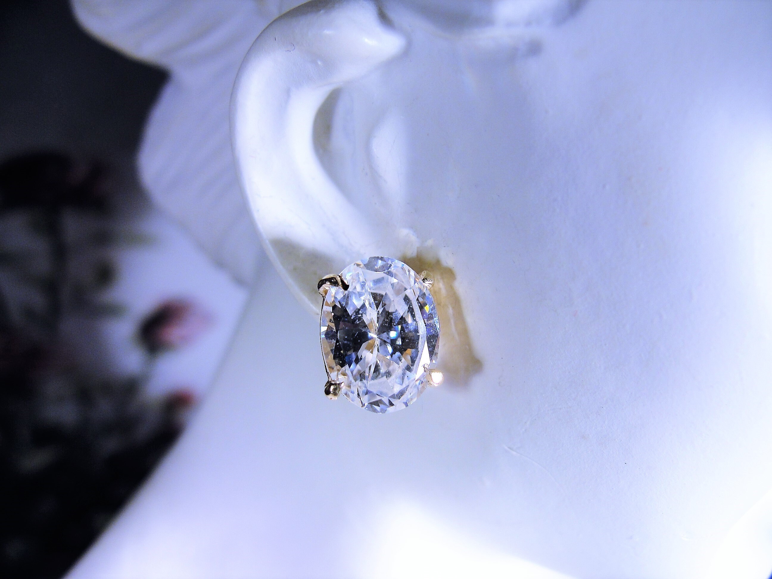 This is a gorgeous pair of Cubic Zirconia Diamond Earrings where each earring carries a 2 Carat oval cut CZ Gem. Each gem measures 9mm by 7mm in size, which is approximately 2 Carat each. These CZ are a brilliant cut and are simply understated elegance! Beautiful!