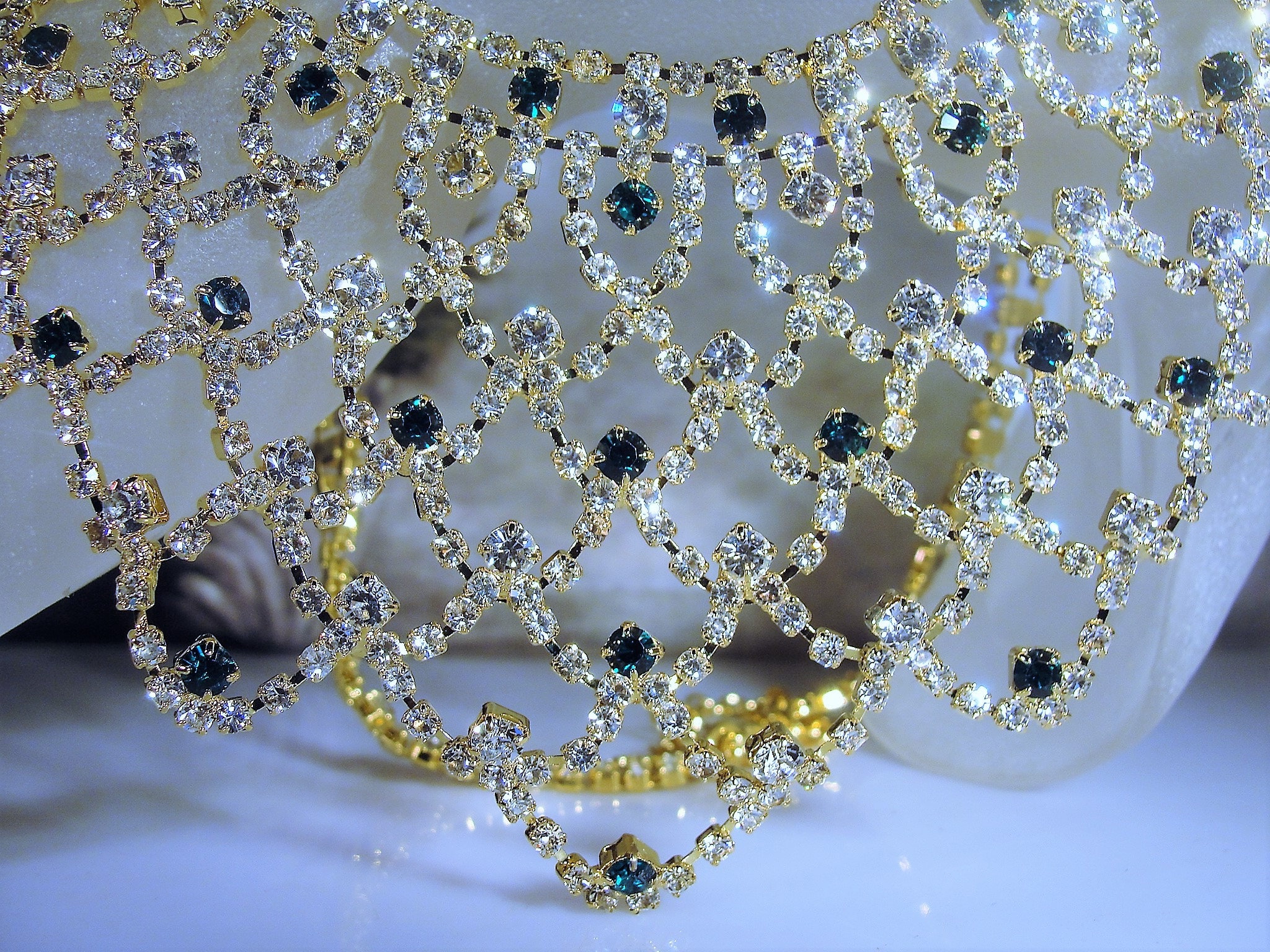 This is a stunning and gorgeous Jacqueline Bouvier Kennedy reproduction of an Emerald Green and Clear Swarovski Clear bib Necklace that was a part of her jewelry collection (the original one, not this one :) ). Jacqueline Kennedy has always been noted for her timeless taste in everything that wore, designed or decorated. You will feel like a princess when wearing this necklace and it is perfect for any formal occasion or special holiday. Such an eye catching piece!!