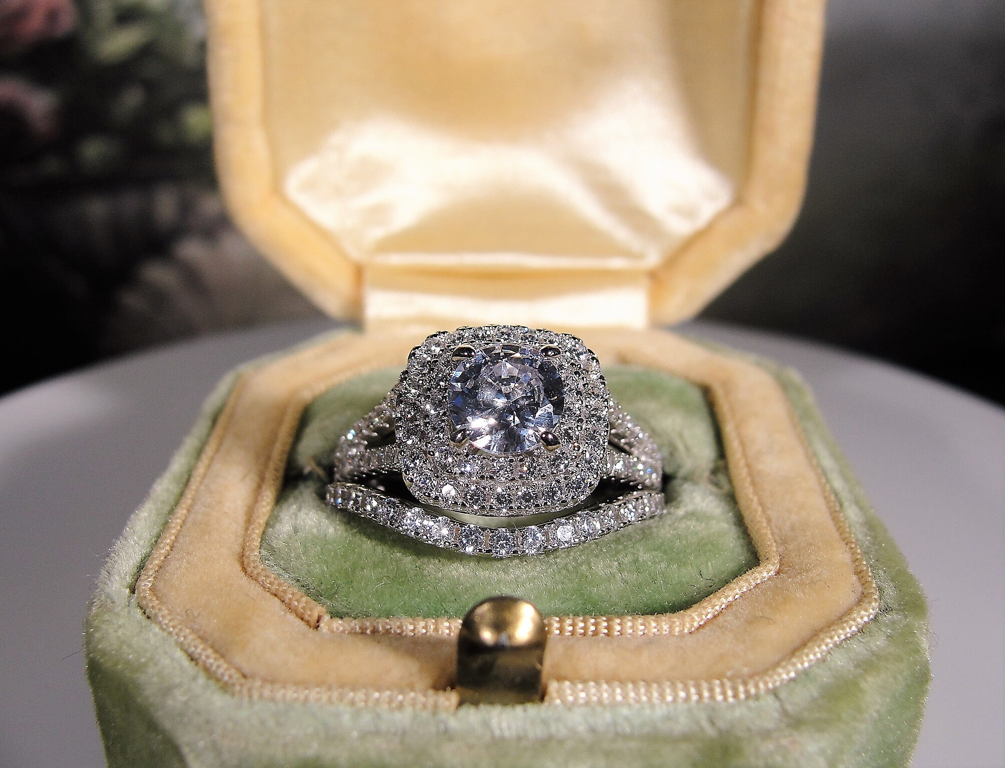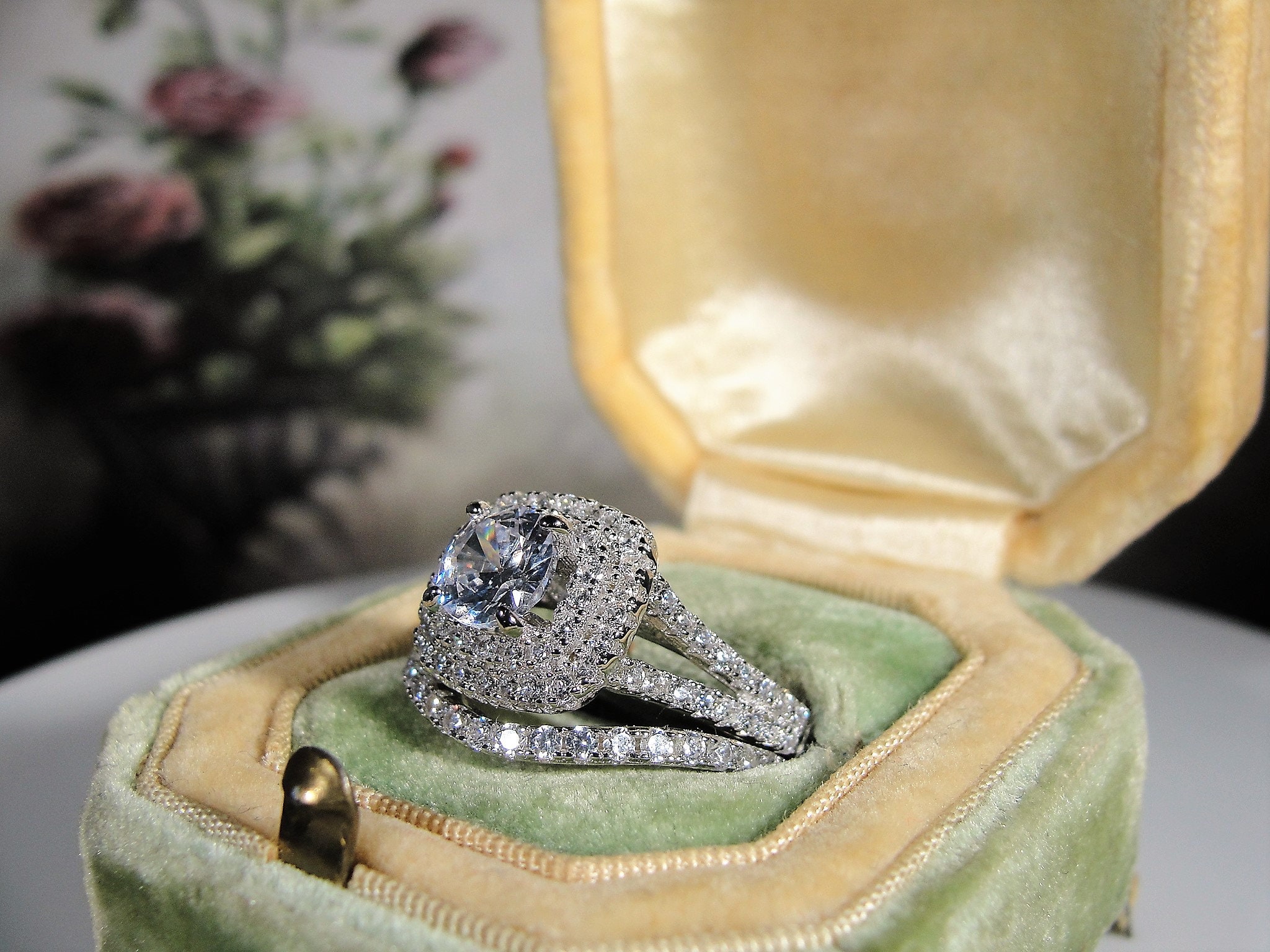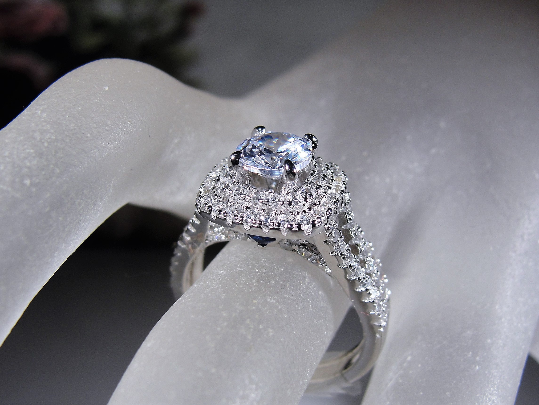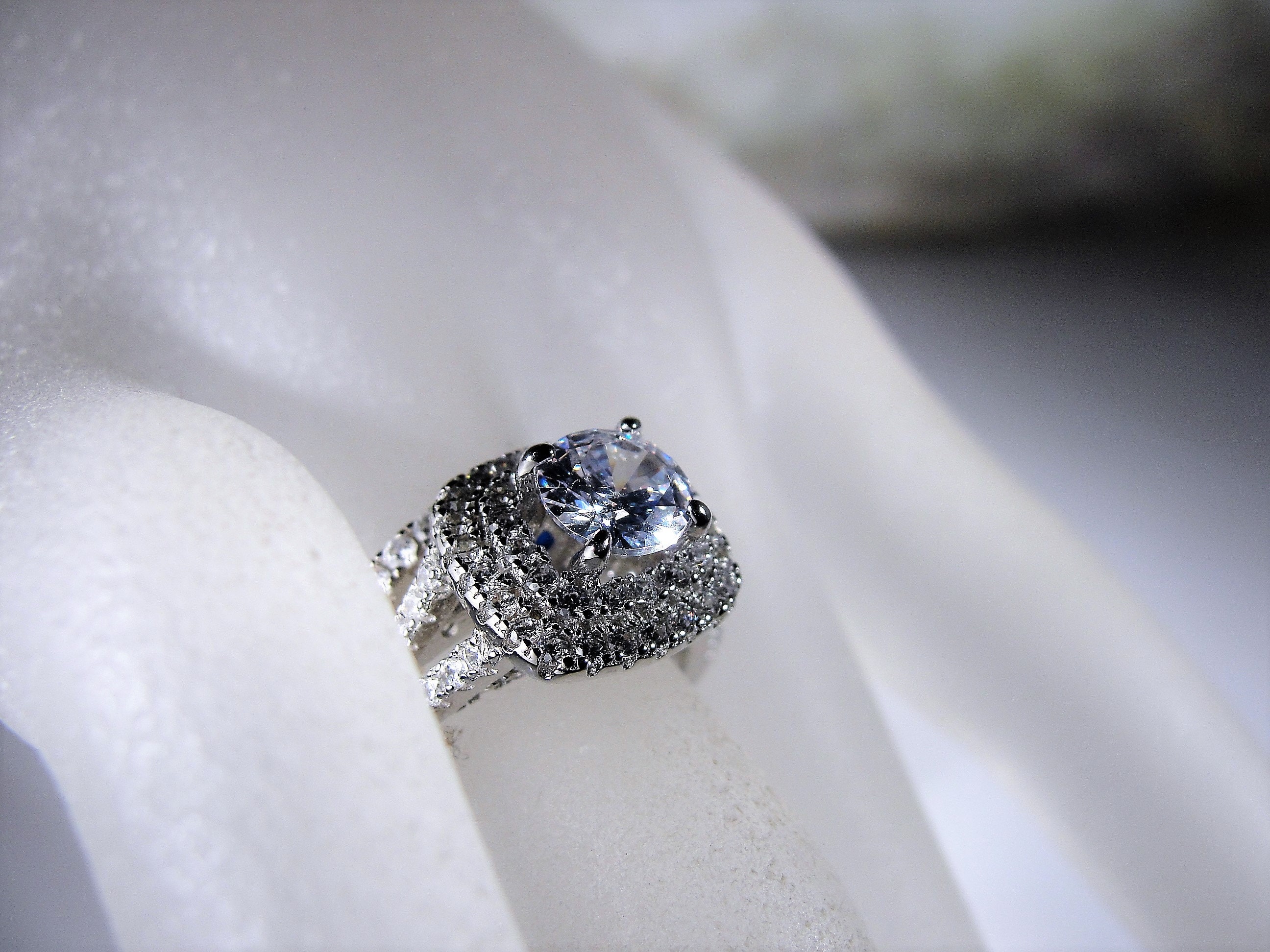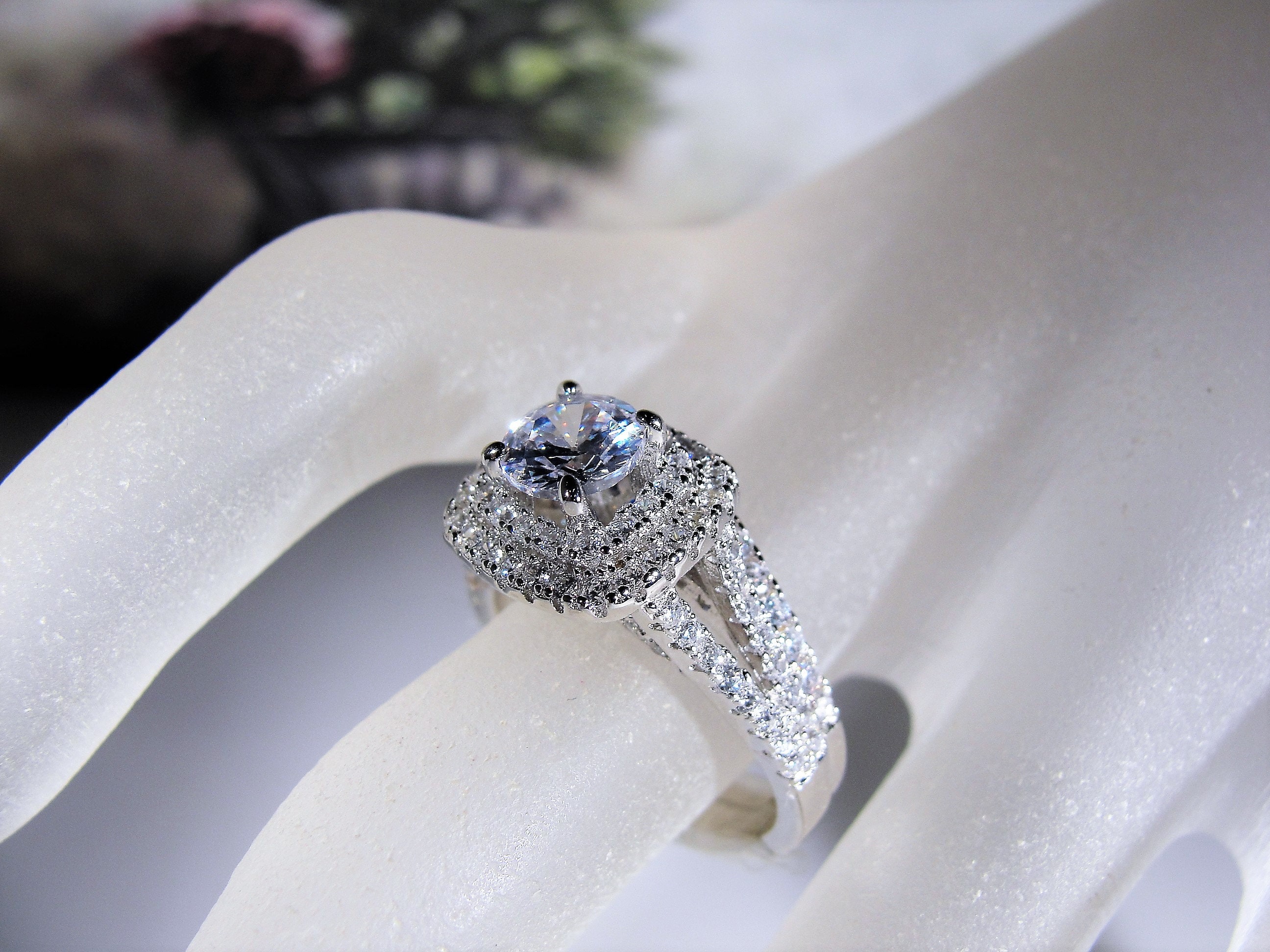 • Number of gems – 133 in total; Size of the center CZ is .60 CT (5.5mm in diameter)